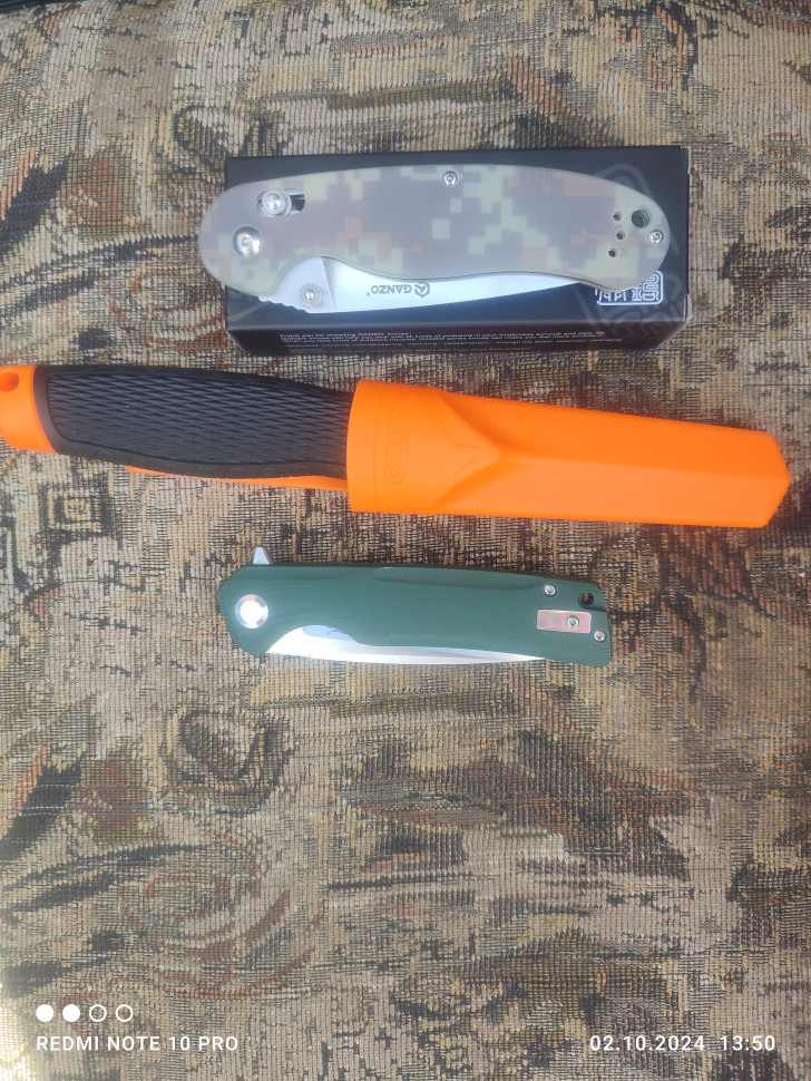 Рукоятка каждого ножа Ganzo 727M облицована накладками из стеклопластика G10. Это современный композитный материал с высокими показателями износостойкости и способностью выдерживать воздействие многих химически активных веществ. Для выбора доступны четыре цветовых варианта рукоятки: черный, оранжевый, болотно-зеленый и камуфляжный, Вне зависимости от цвета, поверхность любой рукоятки текстурированная, чтобы его можно было крепче держать в руках. Помимо того, производители предусмотрительно разместили на рукоятке клипсу для крепления ножа на ремень и отверстие для продевания темляка.