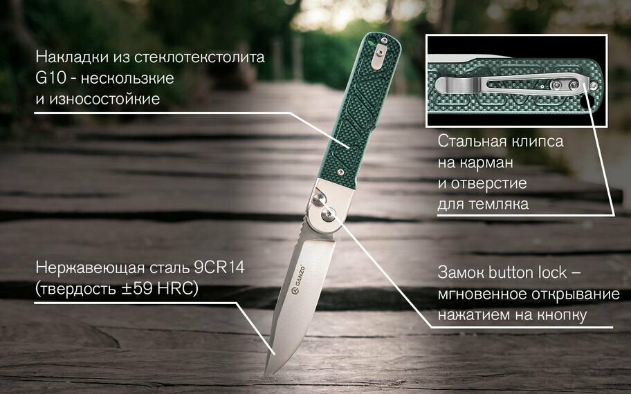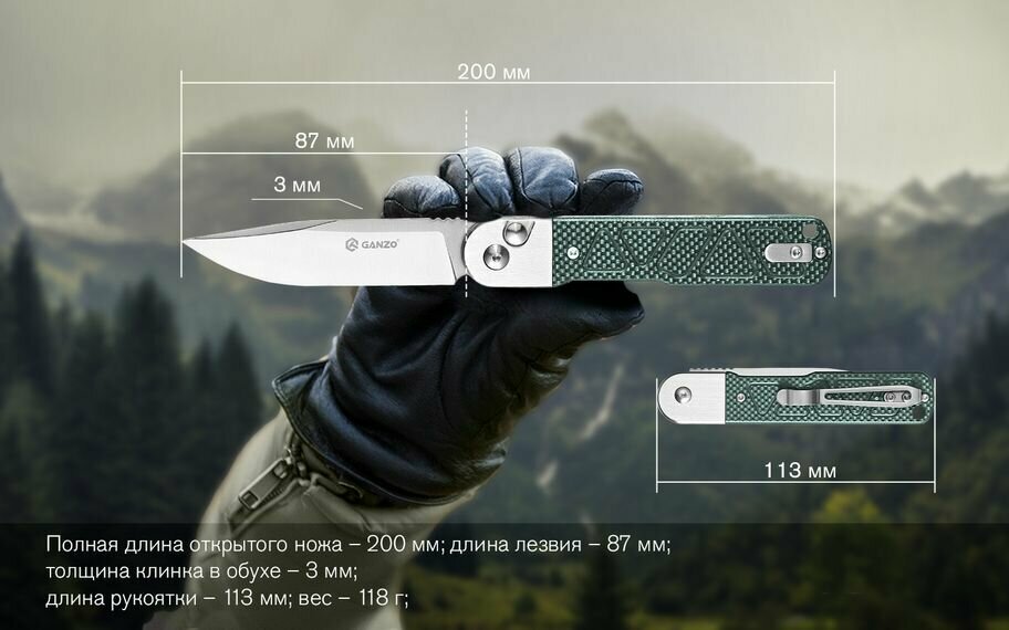 Описание складного ножа Ganzo G767-GB, зеленого: