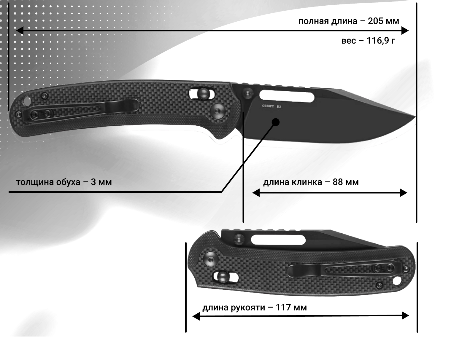 Нож Ganzo G768PT может похвастаться универсальностью благодаря сверхпрочным, проверенным временем материалам и ряду мелких конструктивных особенностей: