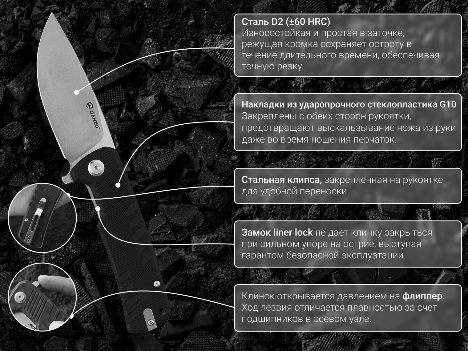 К главным преимуществам ножа Ganzo G769 относятся качественная механика и использование высококлассных материалов: