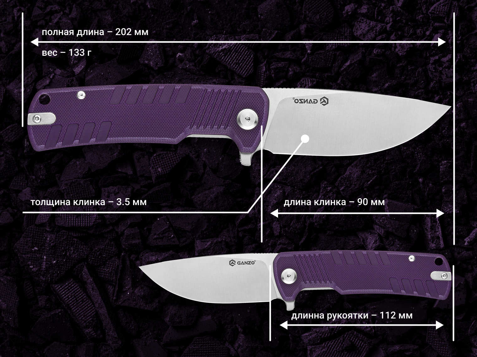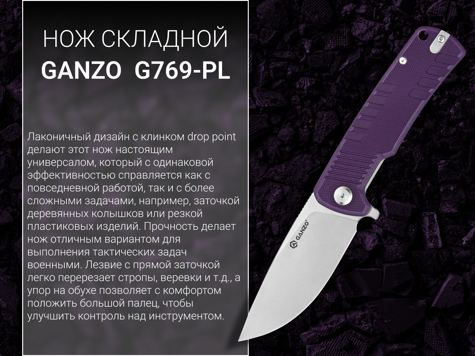 Лаконичный дизайн с клинком drop point делают из складного ножа Ganzo G769 настоящего универсала, который с одинаковой эффективностью справляется как с повседневной работой, так и с более сложными задачами, например, заточкой деревянных кольев или резом пластиковых изделий. При этом модель не занимает много места. Она складывается до 112 мм, что в совокупности с весом, не превышающим 135,8 г, облегчает транспортировку инструмента в любых условиях: во время ношения в пределах города или на природе, на рыбалке или в кемпинге.