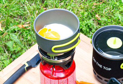 Ёмкость одного котелка – 750 миллилитров, а второго – 400 миллилитров. Более крупный котёл имеет интегрированный теплопоглощающий радиатор. Высокое КПД работы гарантирует быстрый процесс приготовления еды и, кроме того, удаётся сэкономить топливо. Мелкий котёл обеспечен комфортными ручками. Его вы можете использовать в качестве обычной кружки или миски.