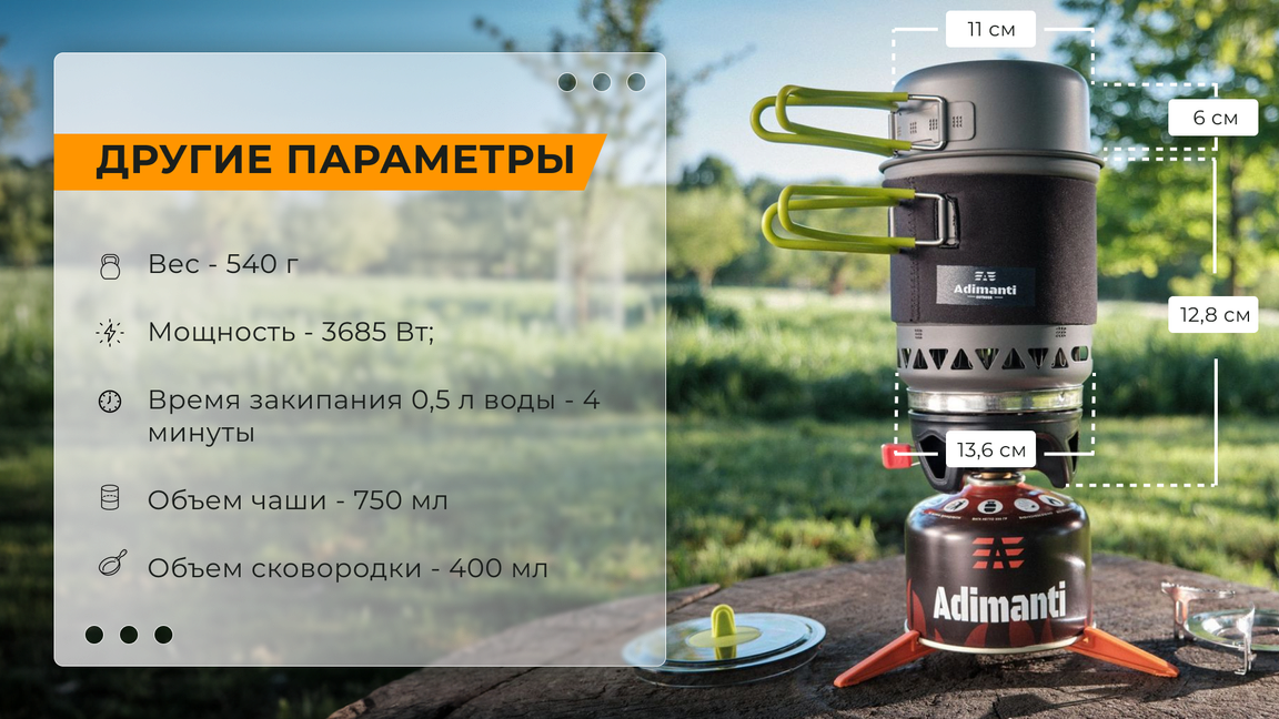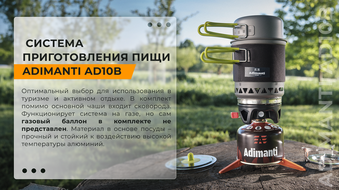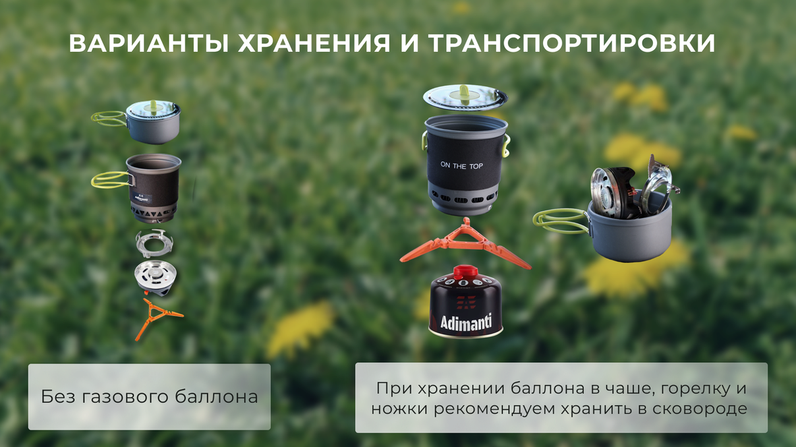 Система приготовления еды оптимальна для использования в туризме и активном отдыхе. В наборе представлены: