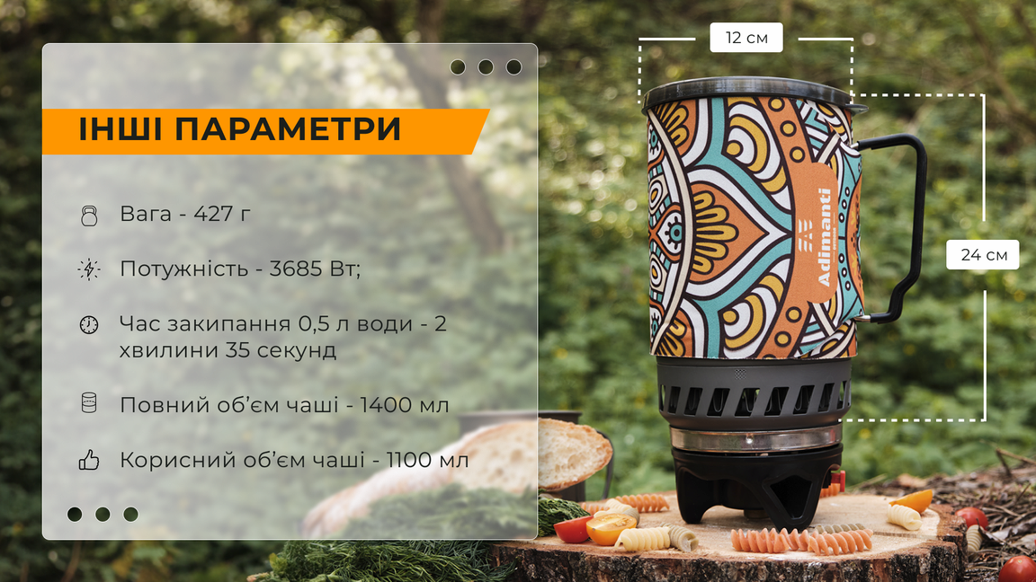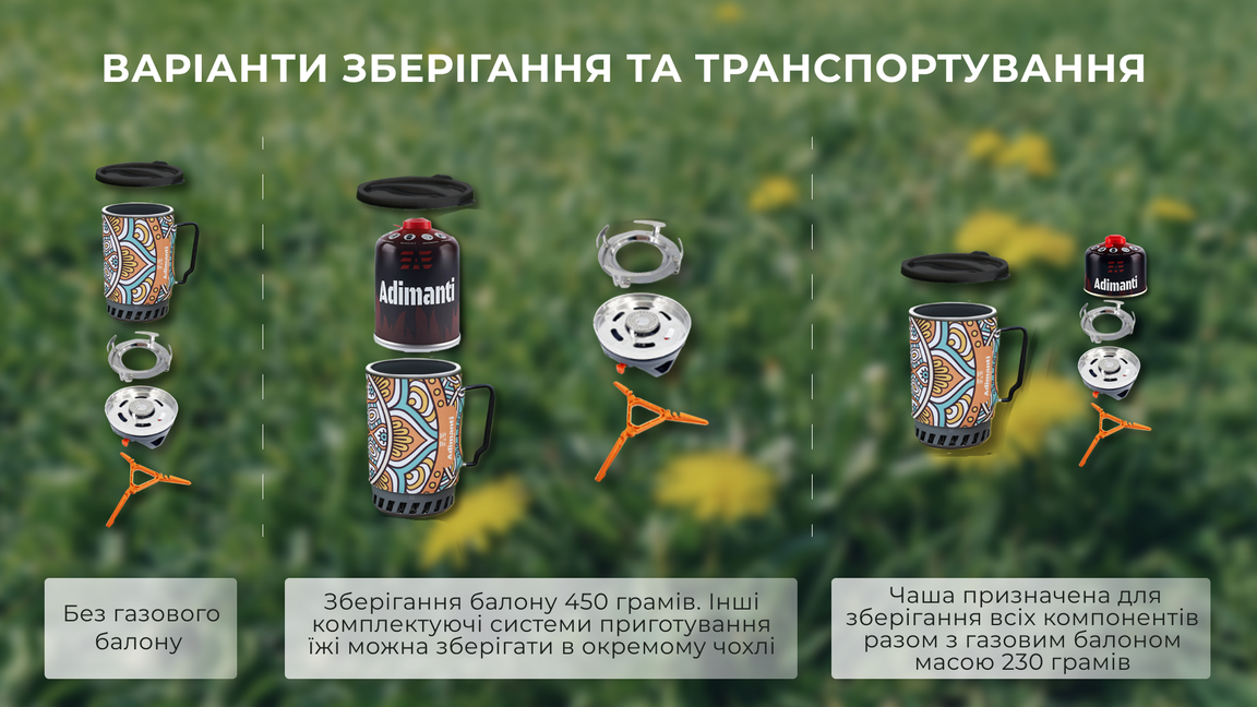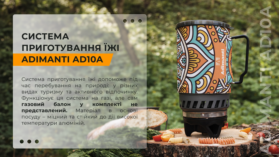 Система приготовления пищи Adimanti AD10A 1400мл Система приготування їжі є оптимальною для використання в різних видах відпочинку на природі. У комплекті представлені: