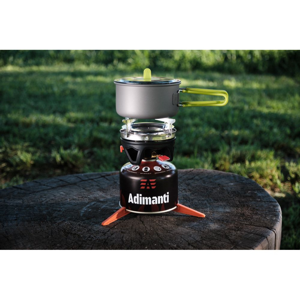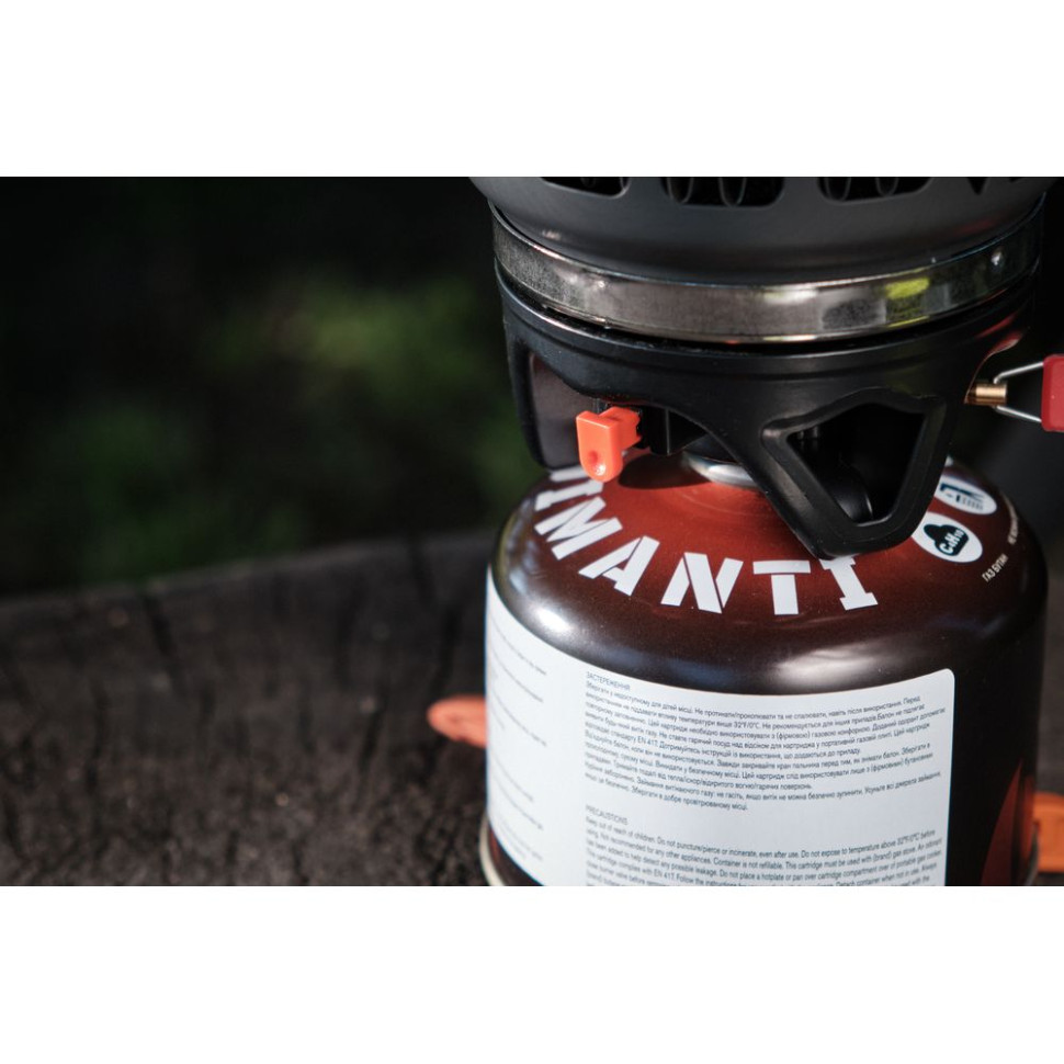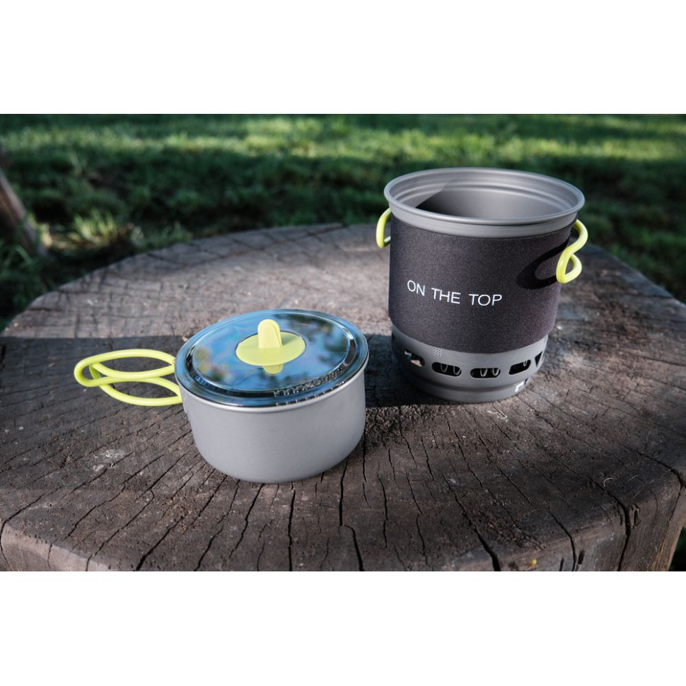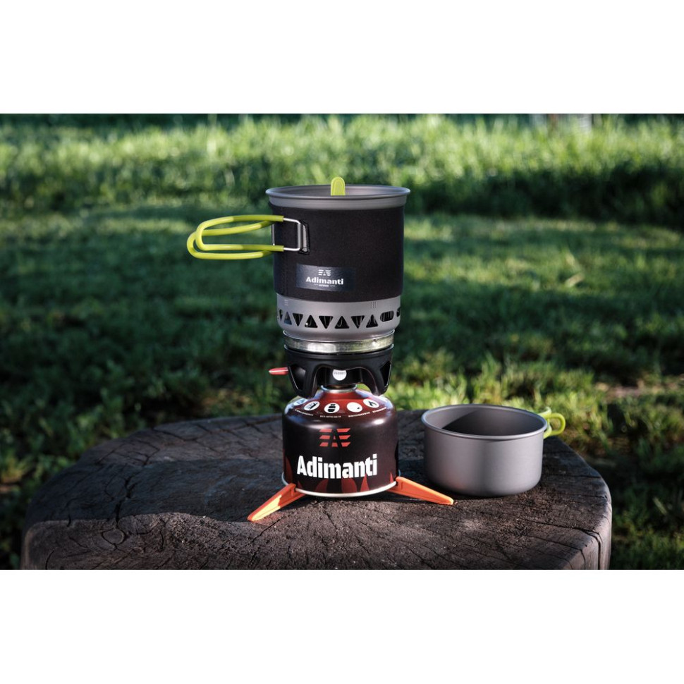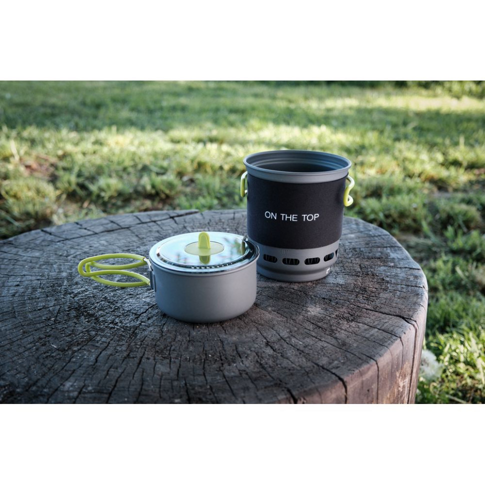Система приготування їжі оптимальна для використання у туризмі та активному відпочинку. Місткість одного казанка – 750 мілілітрів, а другого – 400 мілілітрів. Висока ККД роботи гарантує швидкий процес приготування їжі та, крім того, вдається заощадити паливо. У комплекті не передбачено газовий балон. Полум'я генерується рівне і потужне, і не гасне під поривами вітру.