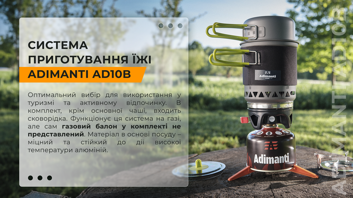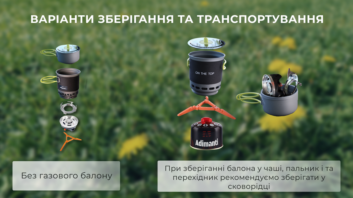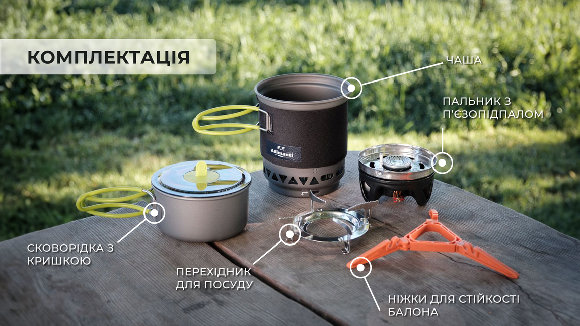 Система приготування їжі оптимальна для використання у туризмі та активному відпочинку. У наборі представлені: