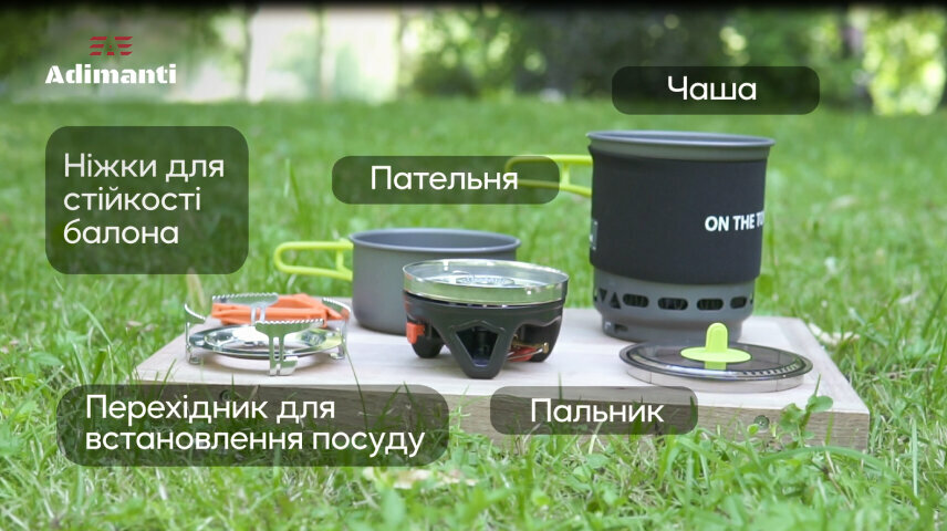 Перехідник потрібний для того, щоб на пальник можна було поставити будь-який інший предмет. Наприклад, каструлю, сковорідку. А стабілізатор служить для підтримки балона, щоб надати йому стійкості на нерівних поверхнях.