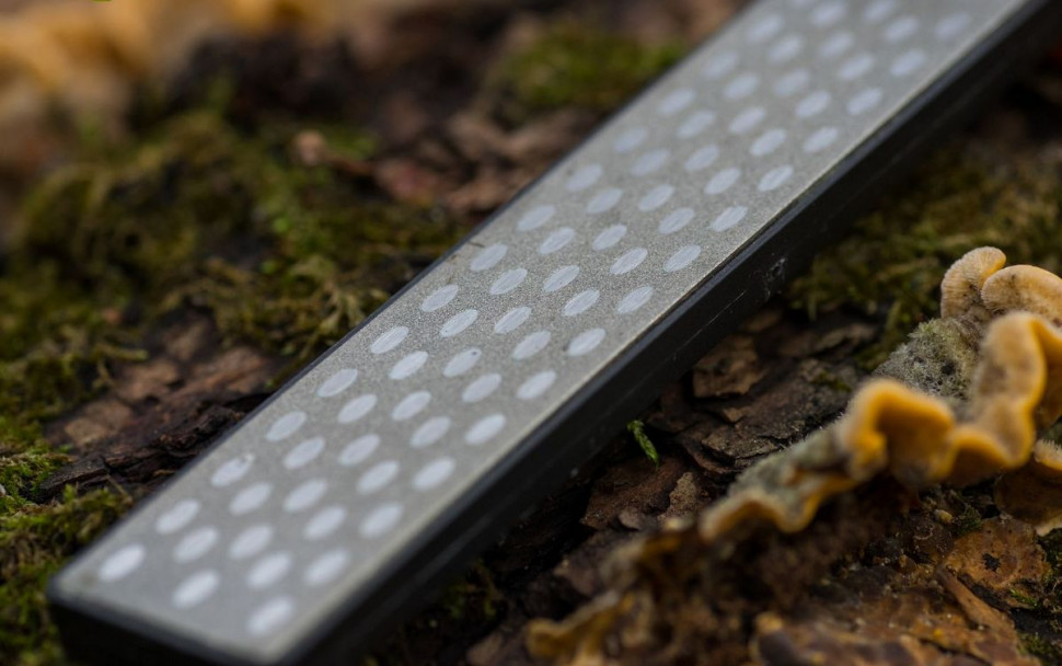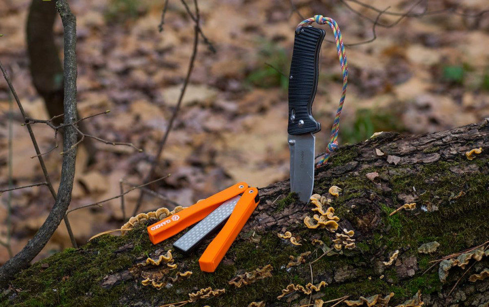 У Ganzo G506 виробник застосував двосторонній точильний камінь з комбінацією грубозернистих і дрібнозернистих елементів (Алмазне покриття). Гритність 360 одиниць ефективна для роботи з затупленими лезами і відновлення пошкоджених. Середньозірниста поверхня з елементами 600 grit прекрасно впорається з фінішною обробкою лез.